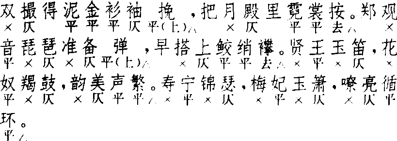鲍老儿 鲍老儿白朴 《梧桐雨》  全曲十句:7 △△5。7 △,5 △。4,4,4 △。4,4,4 △。末 三句有减去者,如关汉卿《单刀会》、岳伯川《铁拐李》、杨景贤《西游记》第十九出。一名〔鲍老催〕、〔催鲍老〕。如岳伯川《铁拐李》,元刊本题〔鲍老儿〕(缺题〔快活三〕,曲文亦有脱误),《元曲选》本题〔鲍老催〕;王伯成《天宝遗事》用〔中吕·粉蝶儿〕三套,两套题〔鲍老儿〕,一套题〔鲍老催〕。关汉卿“颠狂柳絮”套,《盛世新声》、《词林摘艳》均题〔催鲍老〕,而《雍熙乐府》则题〔鲍老儿〕。杨景言(即杨彦华)“一点情牵”套所题牌名多误:原题〔鲍老儿〕应改题〔剔银灯〕(末三句在下曲首),原题〔剔银灯〕(除去首三句)应改题〔蔓菁菜〕,原题〔蔓菁菜〕应改题〔鲍老儿〕。三个曲牌,颠倒错乱,使人迷误。收录此套的《盛世新声》、《词林摘艳》、《雍熙乐府》三书同误。亦入〔正宫〕。与南〔黄钟·鲍老催〕不同。 ☚ 朝天子 古鲍老 ☛ 00007445 |
