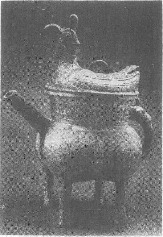 西周。盛酒和酒水调和器。通高19厘米,口径12厘米,腹深11厘米,足高6厘米,足径1.2厘米。重1.6公斤。1980年陕西省长安县沣河东岸出土。陕西省文物管理委员会藏。此盉盖形为一卧伏凤鸟,头顶冠毛高耸,双目凝视,昂首,弯喙,收翼,翘尾。除颈、胸部饰鳞状羽毛外,身、翼、尾均饰长羽毛纹。鸟背中央有半环形小钮。鸟尾有链,与器身手鋬相连系。手鋬上端为牛头形,牛额上环链与盖相连,下颌延长弯曲接于盉腹下部成为鋬,上饰云纹。盉口沿下饰一周细雷纹衬底的夔纹。器上部平面呈圆角方形,口沿微侈,鼓腹,四柱足。管状流向上斜昂,饰云纹,盉下器身有铭文:“公作宝尊彝”五字。此器造型特殊,较为罕见。铸造年代应为康王十六年至二十年之内(约公元前1008——公元前1004年)。