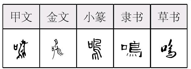 mínɡ鳴,表意,从鳥从口,本义表示鸟叫,引申为昆虫或兽类叫、发出声响、表达意见、抒发感情等。《简化字表》类推简作“鸣”。 |