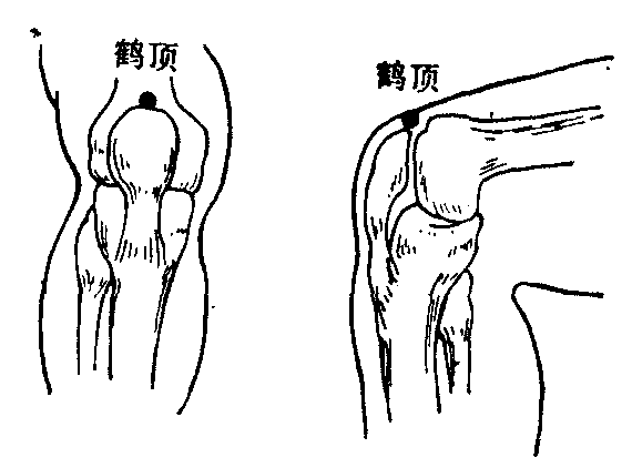 释义 | 古代名物 > 禽鳥類 > 游禽部 > 鵜 > 越王鳥 > 鶴頂 鶴頂 hèdǐng 即越王鳥。 鹤顶hè dǐng旧时卖膏药行谓膝。《切口·卖膏药》:“鹤顶: 脚膝也。” 鹲𪆏【同义】总目录 鹤顶鹲𪆏䴂鵰 鹤顶 鹤顶鹲𪆏鸟的别名。见明·李时珍《本草纲目·禽一·鹲𪆏》。 ☚ 䴇𩾚 䴂鵰 ☛ 鹤顶hèdǐng清代贵官的红色顶戴。亦借指级别较高的将吏。清黄遵宪《悲平壤》诗:“翠翎鹤顶城头堕,一将仓皇马革裹。” 鹤顶经外奇穴名。 鹤顶hè dǐng《本草纲目》禽部第47卷鸏(13)。药名。鸏𪆏的别名。 鹤顶hèdǐnɡ经外奇穴名。见清·廖润鸿《针灸集成》。别名膝顶。位于髌底的中点上方凹陷处, 屈膝取穴。主治膝关节炎、下肢麻痹或瘫痪、脚气。直刺0. 8 ~ 1 寸。灸3 ~7 壮或5 ~15 分钟。 鹤顶 鹤顶奇穴。首见《医学纲目》。别名膝顶。位于膝关节部,髌底上缘正中陷处。屈膝取之。穴位在髌骨上缘囊中,有股四头肌腱,膝关节动、静脉网;并有股神经前皮支。一般直刺或斜刺0.5~1寸。针后局部痠胀或向膝关节扩散。艾炷灸3~5壮;艾卷灸5~10分钟。 鹤顶 本穴是临床常用的穴位。主治下肢疾患,如下肢瘫痪,腿脚无力,膝关节痠痛等。 ☚ 髋骨 膝旁 ☛ |