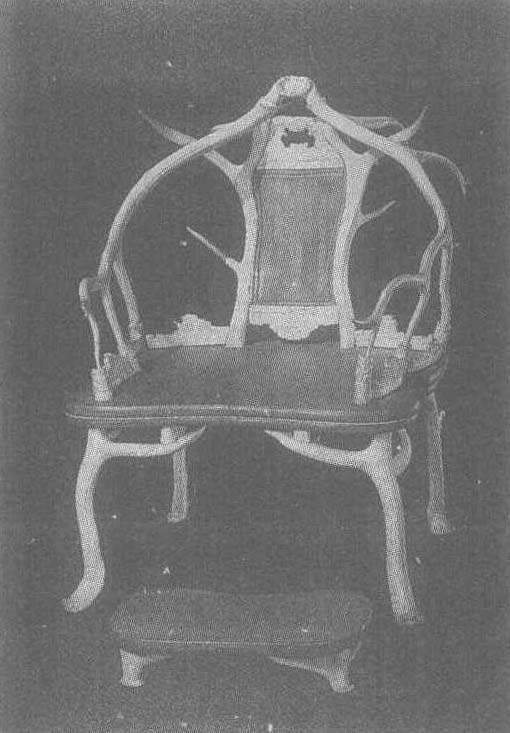 释义 | 古代名物 > 日用類 > 家具部 > 坐卧具 > 鹿角椅 鹿角椅 lùjiǎoyǐ 用鹿角製成的椅子。清代。通高一百三十一厘米,寬九十二厘米。腿用四隻鹿角製成,角根部分作足,恰成外翻馬蹄形。前後兩面每腿向襄側横生一叉,構成支撑坐面之托角棖;兩側面亦用其它角叉作榫插入成托角棖。座面爲黄花梨木,呈扁平葫蘆形,外緣以牛角兩條鑲成素混面,中間嵌象牙一條。座面兩側及後面之邊框上裝骨雕勾捲纹花牙。靠背扶手用一完整鹿角製成,兩隻角的根部連在鹿頭蓋骨上。正中用兩隻兩端做榫之角把座面與椅圈連在一起。靠背板上刻乾隆壬辰(公元1772年)夏中澣題詩:“製椅猶看雙角全,烏號命中想當年。神威詎止群藩讋,聖構應謀萬載綿。不敢坐兮恒敬仰,既知樸矣愿捐妍。盛京惟遠興州近,家法欽承一例然。”此椅爲康熙時以獵物所製。另附脚踏一隻。鹿角椅爲清代特有。北京故宫博物院藏。 鹿角椅清太宗皇太极(1627—1643)御用椅。系皇太极狩猎所获白色鹿角之巧作。材质为椴木和鹿角。高117.5、宽81厘米,鹿角长左侧93.5厘米,右侧91厘米。鹿角洁白无暇,润泽莹光。按鹿角八个支叉的自然形态,安置于椅座边框上,靠背和两侧扶手各为四个支叉。座心为藤条编织的镂空梅花纹饰。靠背皆金漆牙边。四腿为金漆浮雕花纹。椅靠背中间刻制乾隆十九年东巡御制诗:“弯弓曾逐鹿,制器似乘龙,七宝何须羡,八叉良足供,库藏常古质,山养胜新葺,那敢端然坐,千秋示俭恭”,下署:“敬题太宗文皇帝所制鹿角椅一律,乾隆甲戌年秋七月御笔”。根据档案记载,此椅为清嘉庆十年由北京大内交来盛京。现为国家一级文物,收藏于沈阳故宫博物院。 鹿角椅 鹿角椅清康熙。宽91厘米,深75.5厘米,座高53厘米,通高130厘米。北京故宫博物院藏。扶手椅式。由八个鹿角,两个牛角,一个象牙,数片骨雕牙子制成椅的轮廓架。黄花梨座面。在座背板上,刻着夏中澣乾隆壬辰(公元1772年)的题诗:“制椅犹看双角全,乌号命中想当年。神威讵止群藩詟,圣构应谋万载绵。不敢坐兮恒敬仰,既知朴矣愿揖妍。盛京惟远兴州近,家法钦承一例然。”据诗意可知,鹿角椅乃康熙帝时猎物所制,是皇宫使用的陈设品。 ☚ 黑漆嵌螺钿圈椅 黄花梨螭纹炕几 ☛ 鹿角椅 鹿角椅清代帝王的坐椅。系采用麋鹿之角巧制而成。自清太宗起,为了诫勉后世子孙勿忘骑射家风,历代常用鹿角制椅。在这些鹿角椅中,其中一个是除椅座和椅背中间的镶板为木质外,其余均用白色鹿角制成的座椅。其椅靠为一架依自然形状俯扣的鹿角,角干的支叉巧妙地形成与座面相接的支柱和扶手,椅背中间的木板镶嵌在两支鹿角之间,板上刻有乾隆御制诗文,诗的大意是颂扬其祖以 “武功”创业的丰功伟绩,告诫后世子孙遵循祖制,勤于骑射。其椅腿采用四支粗壮的鹿角,上端的支叉交互伸向座面木反的底部,做承托状,显得结实牢固。通观全椅,新奇别致,古朴典雅。现收藏在北京故宫博物院。 清鹿角椅 ☚ 髹金雕龙大椅 嵌牙木雕山水大椅 ☛ |