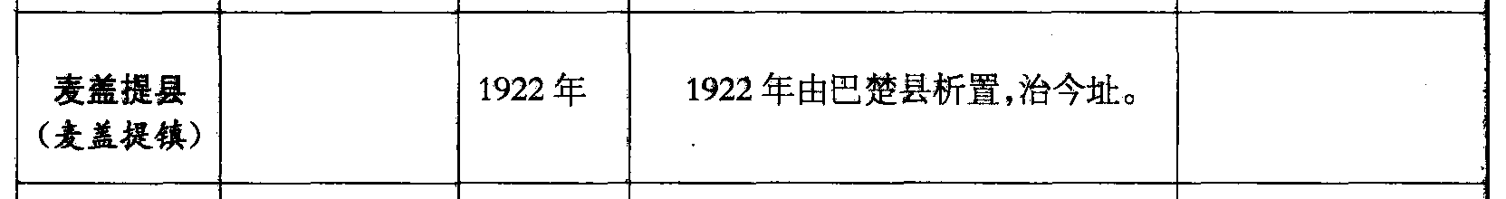 麦盖提县(麦盖提镇)1922年1922年由巴楚县析置,治今址。