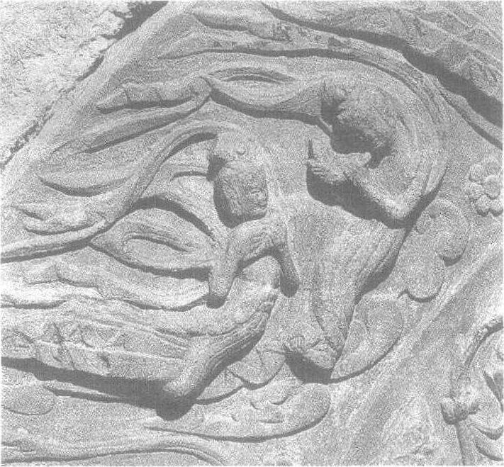 麦积山127窟(魏)正壁坐佛(石刻)头光,内圈为莲花纹,外圈绕以飞天伎乐,各执乐器,或吹或弹。薄衣贴体,彩带歌舞,飞腾天界,轻盈自如。面容清秀,皆作微笑状。与主尊的沉静严肃对比呼应。飞天体型苗条,艺术手法简练,飘舞的彩带长短疏密安排有条不紊,富有节奏感,为成熟期的代表作。早期的飞天,身体臃肿,彩带短而少,似飞不起来。经过多年摸索,终于找到了合适的造型语言。飞天成为颇富特色的艺术题材,为各地石窟普遍采用。他们构成了活泼飞动的世界,起着活跃画面气氛的作用。