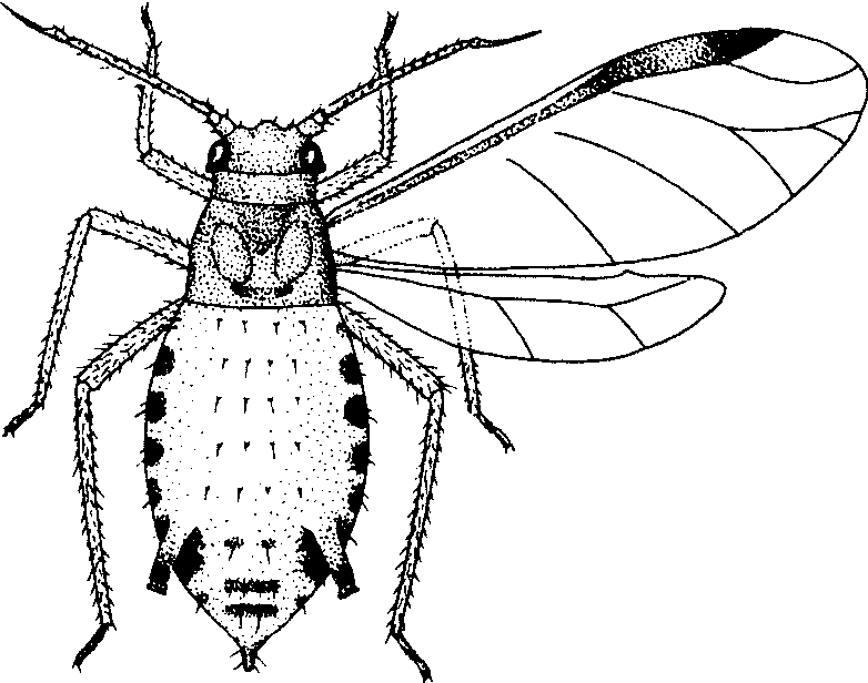 释义 | 害虫 害虫害虫名:蚜(蚜虫;菜~;棉~;桃~;烟~;麦~) 蛾(蛾子;螟蛾;麦~;菜~;衣~;蓑~;毒~;天蚜;夜~;枯叶~) 蚧(红蜡~)蝽(蝽象;荔枝~) 螟(螟虫;大~;桑~;菜~;稻~虫;三化~;玉米~) 蛉(棉~) 蝚 虸(虸蚄) 蟪(~蛄) 蟘 蠖(尺蠖) 蠷(蠷螋) 螨(螨虫;彩~;草~;尘~) 蝶 蠰 螬 蝉(灰~;叶~;稻叶~) 蜮 蜜虫 腻虫 粘虫 油虫 蟥虫 蠓虫 毛虫 竹象 龙虱 白蚕 樟蚕 天牛 地胆 田鳖 步曲 蓟马 樗鸡 芫菁 瓜守 叶甲 牙甲 葬甲 桑蟥 麦蛆 叶蛆 斑蟊 蜤螽 油葫芦 稻飞虱 桑木虱 红娘子 地老虎 黄守瓜 小红虫 金花虫 食心虫 钻心虫切根虫 夹叶虫 卷叶虫 稻苞虫稻象虫 铁甲虫 铁壳虫 硬壳虫乌壳虫 放屁虫 另见:叮咬 翅膀 爬行 飞翔 为害 ☚ 害虫 各种害虫 ☛ 麦蚜wheat aphids刺吸小麦叶、幼茎、穗,并作为病毒介体多种蚜虫的统称。主要有: 麦二叉蚜Schizaphis graminum (Rondani);麦长管蚜Si-tobion avenae (Fabricius); 麦无网长管蚜 Meto-polophium dirhodum (Walker)禾谷缢管蚜Rhopa-losiphum padi(Linnaeus)。同翅目,蚜科。世界各栽培小麦地区均有发生。为麦类作物的主要害虫,亦取食其他禾本科植物。 图 1 麦二叉蚜(有翅孤雌蚜背面观) 图2 禾谷缢管蚜(有翅孤雌蚜背面观) 生活习性 以无翅孤雌胎生雌蚜繁殖为主,有翅孤雌胎生雌蚜迁飞扩散。一年产生10余代至30代以上。在中国寒冷麦区,禾谷缢管蚜和麦无网长管蚜为异寄主全周期,前者在第一寄主稠李、桃、李及榆叶梅等李属植物上以受精卵越冬,后者在第一寄主野生或栽培蔷薇属植物上以受精卵越冬。初夏迁飞到第二寄主麦类或其他禾本科植物上为害。麦长管蚜和麦二叉蚜在春麦区(后者有时在冬麦区北部)亦可营同寄主全周期生活,在麦类或其他禾本科植物上,产生有性雌雄蚜交配产卵,在冬麦或禾本科杂草以及草下土缝中越冬。卵孵化为干母,继续产生有翅或无翅孤雌蚜,再迁入麦田为害。在温暖麦区,4种麦蚜亦可以无翅孤雌成蚜和若蚜在冬麦田或禾本科草上越冬,营不全周期生活。冬季每遇天暖,仍能在麦苗上活动。翌年春天返暖随小麦开始生长,恢复为害和繁殖。在冬麦和春麦混种区,冬麦田是麦蚜越冬的繁殖基地。小麦抽穗时蚜量急剧上升,灌浆乳熟期达到高峰;小麦成熟期,迁移到高粱、玉米、糜子、自生麦苗和各自野生寄主上继续繁殖。麦收后,麦二叉蚜和麦长管蚜的蚜量在糜子、高粱和自生麦苗上最多。禾缢管蚜和麦无网长管蚜主要在黍子和自生麦苗上。夏秋之际禾缢管蚜主要在玉米上为害。在冬麦区或冬麦春麦混种区,秋末小麦出土后,麦蚜迁回麦田繁殖。在春麦区,迁往草丛越冬。 麦蚜的成虫和若虫均吸食叶片、茎秆和嫩穗汁液,危及植株的正常生长,且能传播多种病毒病,以传播大麦黄矮病毒的危害性最大。在陕西,大发生年的主要媒虫是麦二叉蚜。 麦二叉蚜最初集中在叶鞘和第一、二片真叶上,随麦株生长逐渐分散于各叶片。畏阳光、喜干旱,大多分布在植株下部叶片的叶背为害。吸食时分泌有毒物质,破坏叶绿素,叶片呈现黄斑,逐渐黄斑连片,直至枯死。麦长管蚜在小麦抽穗前,随小麦生长逐渐向上部叶片蔓延。喜光、较耐潮湿,嗜栖穗部。抽穗后即取食嫩穗。麦无网长管蚜以为害叶片为主。小麦生育后期蚜量明显增加,主要在叶片和茎秆上为害,禾缢管蚜发生期较迟,多在小麦乳熟后蚜量才明显上升。畏光喜湿、取食茎秆和叶鞘。 为害规律 在气候因素中,温湿度常起主导作用。如冬暖春旱,小麦孕穗期前后遇有春寒,小麦生育延续,炎夏高温期短,麦蚜常猖獗,黄矮病也易于流行。麦二叉蚜最适温度、相对湿度分别为15~22℃和35~67%,30℃以上生育停滞;麦长管蚜的最适温湿度为12~20℃和40~80%,28℃以上生育停滞;无网长管蚜最适温度低于麦长管蚜,最适相对湿度与麦长管蚜相似。生育停滞高温在26℃以上; 禾缢管蚜30℃左右发育最快。喜高湿,不耐干旱。暴雨的机械冲击,常使蚜量显著下降,麦二叉蚜和麦长管蚜都能随风作远距离迁飞,前者迁飞范围更大。 粟是麦蚜和黄矮病的夏季主要寄主。在一年两熟的灌溉冬麦区,粟子及杂草寄主数量少。秋季麦田的蚜虫量和带毒蚜量低,因而蚜害和病害较轻。在冬麦和春麦混种区,冬麦苗期长,常是导致蚜、病流行的重要因素。冬麦面积扩大,春麦也随之受害。一类麦田比二、三类麦田麦蚜发生早、蚜量高。冬麦播种愈早、蚜量愈高,春季成熟愈迟也愈多。 瓢虫、草蛉、蚜茧蜂、食蚜蝇、食蚜蜘蛛和蚜霉菌,是麦蚜的主要天敌,常在蚜量达高峰时大量出现。在田间自然情况下,当年天敌对麦田蚜害控制作用不大。入夏高湿,寄主作物锐减,加上天敌的辅助作用,使越夏麦蚜数量急剧下降,这是麦蚜间歇性发生的重要原因之一。 防治方法 合理调整作物布局,压缩蚜、病的主要桥梁寄主高粱和粟的种植面积;冬麦区进行冬灌早春碾压或耙耱,消灭越冬蚜虫;春麦适期早播,及时浇灌;清除自生麦和田边禾本科杂草、都有减轻蚜害的作用。在黄矮病流行区,采用内吸杀虫剂进行种子处理。未经处理的地区或田块,宜做好苗期治蚜。在黄矮病非流行区主要控制穗期的麦长管蚜,可喷施内吸杀虫剂。 麦蚜麦类害虫。属昆虫纲,同翅目,蚜虫科。主要有两种:1.麦长管蚜(Macrosiphum avenae),体长约2.4毫米,额瘤显著,前翅中脉分三支。2.麦二叉蚜(Schizaphis graminum),体长1.7毫米,额瘤不显著,前翅中脉分二支。温度适宜时,5天便可完成一代。用口器刺入茎叶或穗粒,