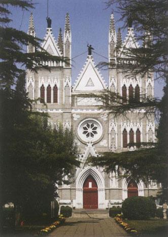 释义 | 北堂 北堂原来位于北京中南海湖畔蚕池口,1703年建成开堂。 1887年由于中南海扩建被拆除。后来清朝政府拨银45万两,在西安门内西什库另外选了一块地方重建;1900年整修时加高一层,成为现在的北堂。北堂是典型的哥特式建筑。 它有四个高高的尖塔,三个尖拱券入口及主跨正中圆形的玫瑰花窗,在青松翠柏环绕之中显得洁白挺拔。 堂前左右两旁分别有一座中式黄色琉璃瓦顶的亭子,在亭内有乾隆皇帝亲笔题写的石碑。主入口两侧的圣者雕像是北京各教堂中绝无仅有的。 1985年,教堂修缮一新,更加光彩夺目。 西什库教堂(北堂) |