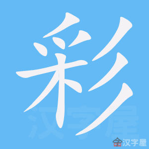 | 释义 | ![]() 各种颜色;各种颜色的丝绸;精彩的成分;赞美的叫喊声。有时可单用,常用于固定词组中。单用时在句子中可作宾语。 他情不自禁地喝了一声~|高楼大厦为城市增了辉,添了~|五~缤纷|张灯结~。 【近】 色 【词语】 彩版 彩车 彩绸 彩带 彩旦 彩电 彩号 彩虹 彩绘 彩轿 彩礼 彩练 彩排 彩棚 彩票 彩旗 彩塑 彩陶 彩头 彩照 字源解说 本 字“彩” 采,既是声旁也是形旁,表示摘集。彩,篆文 合并字“綵” 采,既是声旁也是形旁,是“彩”的省略,表示缤纷颜色。綵=丝(丝,绸)+采(“彩”,光色缤纷),表示多色之稠。造字本义:彩绸。 附 文言版《説文解字》: 彩, 文章也。从彡采聲。 附 白话版《说文解字》: 彩, 丰富交织的纹案。字形采用“彡”作边旁,“采”是声旁。 引申线索 ![]() 【字族索引】 彡 采 【同音字】 cǎi |