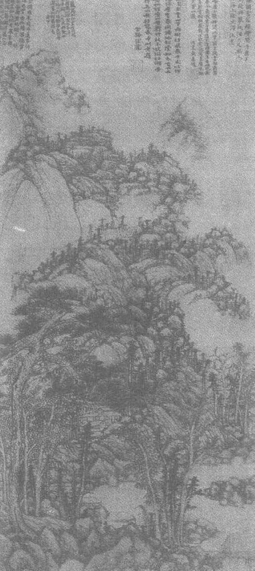 释义 | 黄公望丹崖玉树图轴 黄公望丹崖玉树图轴元。黄公望绘。纸本设色。纵101.3厘米,横43.8厘米。北京故宫博物院藏。黄公望,“元四家”之一,著名的文人画家。图中层峦迭现,迂曲抬升,矾头(山上的乱石)密布,犹如翻花涌浪,托出几座雄峙的高峰。山间云雾蒸腾,飘流变幻。长松挺秀,葱郁茂盛。几处村舍掩映其间。山脚下溪水潺湲,小桥横卧,一人策杖前行,累累顽石交叠杂错,蹊径莫辨。此图画意荒朴。层峦与雄峰之间形成鲜明的繁简对比,沉稳凝重,气势恢宏。笔法简劲,皴线疏朗,墨色浓淡相宜,润泽温厚。无作者款印,幅中元人张翥在题诗中指明是黄公望的手笔。另有元人无名氏、王国器、陆行直、明人徐霖、董其昌、清人奕隽六家题记。曾由董其昌、张见阳等收藏。《书画记》、《过云楼书画记》著录。 ☚ 任仁发张果见明皇图卷 黄公望天池石壁图轴 ☛ |
