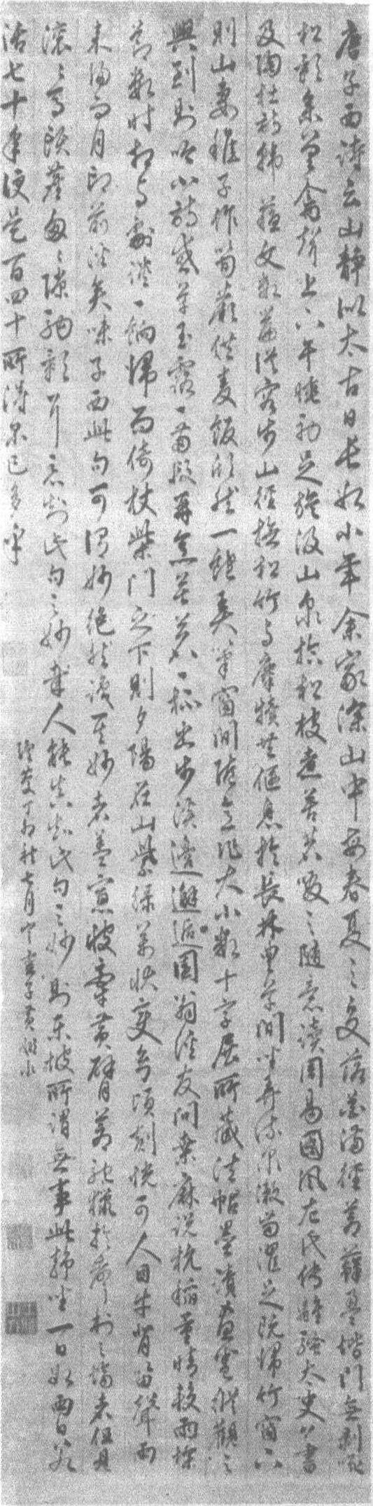 明。纸本。纵131厘米,横33厘米。北京故宫博物院藏。黄姬水(明正德四年—明万历二年,即公元1509—1574年),字淳父,长洲(今江苏苏州)人。少聪颖,善词赋。工行草,学于祝允明。著有《贫士传》、《白下集》、《高素斋集》。此幅行书,工稳有致,得祝氏笔意而更见秀逸。为黄姬水中晚年佳作。曾经乾隆御府鉴藏。