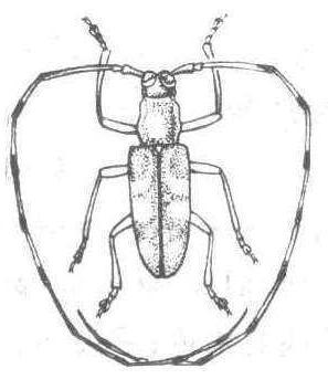 释义 | 黄星天牛yellowspotted longicorn beetlePsacothea hilaris (Pascoe),又称长角天牛、黄点天牛、剥皮蛀等。鞘翅目,天牛科。分布于中国华东及河北、广东、四川、云南等地;日本和朝鲜半岛也有分布。寄主有桑、无花果、面包果、油桐。成虫体长15~23 mm,体翅黑色,密生黄色短毛,鞘翅上有大小不一的黄色斑纹。幼虫体圆筒形,黄白色,长22.5~32mm,前胸硬皮板黑色长方形,两侧角各有一褐色三角形凹入。成虫食害桑叶、叶脉、嫩枝、枝皮,幼虫在桑枝干皮下蛀食。一年发生1~2代,以幼虫在桑树干内越冬。防治方法,捕捉成虫,刮杀卵、幼虫;农药(50%杀螟松250倍或20%灭蛀灵50倍液)喷树干。 成虫 幼虫 黄星天牛 |
