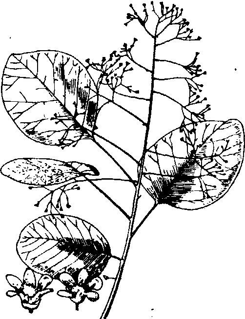 释义 | 古代名物 > 木果類 > 林木部 > 灌木 > 櫨 > 黄櫨 黄櫨 huánglú 即櫨。 黄栌cinereous smoketreeCotinus coggygriavar.cinerea,别名红叶、黄道栌。漆树科黄栌属落叶灌木或小乔木。染色体数2n=30。高达5m,树冠多呈圆球形。树皮灰褐色,小枝赤褐色;叶互生,倒卵形或卵圆形,长3~8cm,全缘;圆锥花序顶生,花杂性,花期5月。果序长约20cm,核果肾形,红色,果期8月。产中国华北、西北、华中及华东等地,欧洲东南部也有分布。喜阳,稍耐半阴,耐旱、耐寒。适应性强,在瘠薄或碱土上均能生长,忌水湿及粘重土壤。对二氧化硫有较强抗性,滞尘性强。秋季温度降至5℃时,日温差在10℃以上,秋叶可4~5天后转红。在低海拔平原,因温差不够,难于观赏到红艳秋叶。 播种繁殖(秋播),也可分蘖、根插或嫩枝扦插,栽培品种主要用嫁接繁殖。夏季高温高湿期易染白粉病及霜霉病,除加强通风透光外,还应每10天喷一次等量式100倍波尔多液或0.3°~0.5°石硫合剂防治。 黄栌秋季叶色变红,鲜艳夺目,夏初花开时不育花梗伸长成羽毛状,簇集枝梢,犹如万缕罗纱绕林间,丛植、片植于山坡、河岸,或配植于大型山石旁均很适宜。 见于栽培的有欧洲黄栌(C.coggygria),高达5m,叶卵形至倒卵形,无毛,产欧洲东南部。其变种及栽培品种有:毛黄栌(var. pubescens),小枝被灰色短柔毛,叶背面密生短柔毛,产中国贵州、四川、甘肃、陕西、山西、山东、河南、湖北和浙江,欧洲东南部、西亚至高加索也有分布;粉背黄栌(var. glaucophylla),叶背面被白粉,产中国云南、四川、甘肃、陕西及山西;‘紫叶’黄栌(cv. Purpureus),叶紫红色;‘垂枝’黄栌(cv. Pendu-lus),枝下垂,树冠伞状;‘四季’黄栌(cv. Semperflo-rens),一年开花多次。四川黄栌(C. szechuanensis),高2~5m,叶近圆形或阔卵形,产中国四川西北部。矮黄栌(C. nana),高0.5~1.5m,叶近圆形或卵圆形,花萼紫红色,花瓣粉红色具紫红色脉纹,果褐色,产中国云南西北部。美洲黄栌(C. americanus),高达12m,产美国。 黄栌药名。出 《本草拾遗》。又名黄道栌、栌木、月亮柴、黄栌木。为漆树科植物光叶黄栌Cotinus coggygria scop.var.cinerea Engl. 的木材或根。分布西南、华北和浙江等地。苦,微寒。入心、肝经。清利湿热,宁心平肝。治烦热,目赤,黄疸,急、慢性肝炎,麻疹不出。煎服:6~9g。木材含硫黄菊素及其葡萄糖苷,又含杨梅树皮素及没食子酸等鞣质成分。还含非瑟素(Fisetin) 及二氢非瑟素。杨梅树皮素在体外对金黄色葡萄球菌,伤寒、痢疾、大肠杆菌均有抑制作用,在体外对人鼻咽癌KB细胞有抑制作用,在体内对黑色素瘤B15和淋巴白血病L1210有抑制作用。杨梅树皮素等可抑制大鼠眼醛糖还原酶。非瑟素可抑制小鼠小肠乙酰胆碱引起的痉挛。 黄栌common smoke treeCotinus coggygria Scop.,漆树科,黄栌属。落叶小乔木。高达8 m,树冠呈圆球形。单叶互生,卵圆形或近圆形,长3~8 cm,宽2.5~6 cm,侧脉6~11对,先端分叉;叶柄细长。圆锥花序顶生;花小,杂性;5出数;子房1室。果序长5~20 cm,多数不孕花羽毛状细长花梗宿存。核果肾形,径3~4 mm,红色。分布于华北、西南及河南、陕西、湖北、浙江等省;南欧至叙利亚、伊朗、巴基斯坦、印度北部也有分布。秋叶红色,为著名观叶树种。木材可提黄色染料。 黄栌 黄栌 黄栌huangluCotinus coggygria亦称栌木。漆树科,黄栌属。灌木或小乔木。株高3~5米。树皮暗褐色。小枝紫褐色。树冠圆形。单叶,互生,倒卵圆形、卵圆形或圆形,先端圆或微凹,基部圆形或宽楔形,全缘,两面有灰色柔毛,下面较密。花杂性,排列成顶生圆锥花序,混有多数不育花,不育花早落,但花梗伸长,且被毛,呈羽毛状。花期4~5月。核果,肾形。入秋后叶变红色,称为红叶,供观赏。分布于我国北部和中部。木材黄色,可提黄色染料; 树皮、叶可制取烤胶。枝、叶入药,有消炎、清湿热之效。 ☚ 枫树 栎树 ☛ 黄栌 黄栌Huanglu漆树科。又名毛黄栌、红叶。落叶灌木,树汁有强烈气味。叶近圆形,长5—7厘米。圆锥花序顶生;花杂性;萼片、花瓣和雄蕊各5;子房1室,花柱2—3。核果小,肾形,径3—4毫米,红色,果序上有多数不孕花的紫绿色羽毛状细长花梗宿存。产华北、浙江、山东、湖北、四川、陕西等省。树皮可提栲胶;叶含芳香油;木材可提黄色染料;枝、叶入药,能消炎、清湿热;北京香山黄栌受霜寒后叶绿素破坏,叶黄素和花青素显示出红叶的特点,为北京的秋日一大特色。真正的红叶主要是黄栌,而槭树科的槭树(也叫枫树)、南方金缕梅科的枫香的叶到秋天也变红或黄色。 ☚ 橡胶树 杧果 ☛ 黄栌huáng lú《本草纲目》木部第35卷黄栌(11)。药名。 黄栌 黄栌黄栌,始载于《本草拾遗》。为漆树科植物红叶Cotinuscoggygria Scop. var. cinerea Engl. 的木材、根或枝叶。原植物分布于河北、山东、河南、湖北、四川等省。 ☚ 蔷薇根 菥蓂 ☛ |