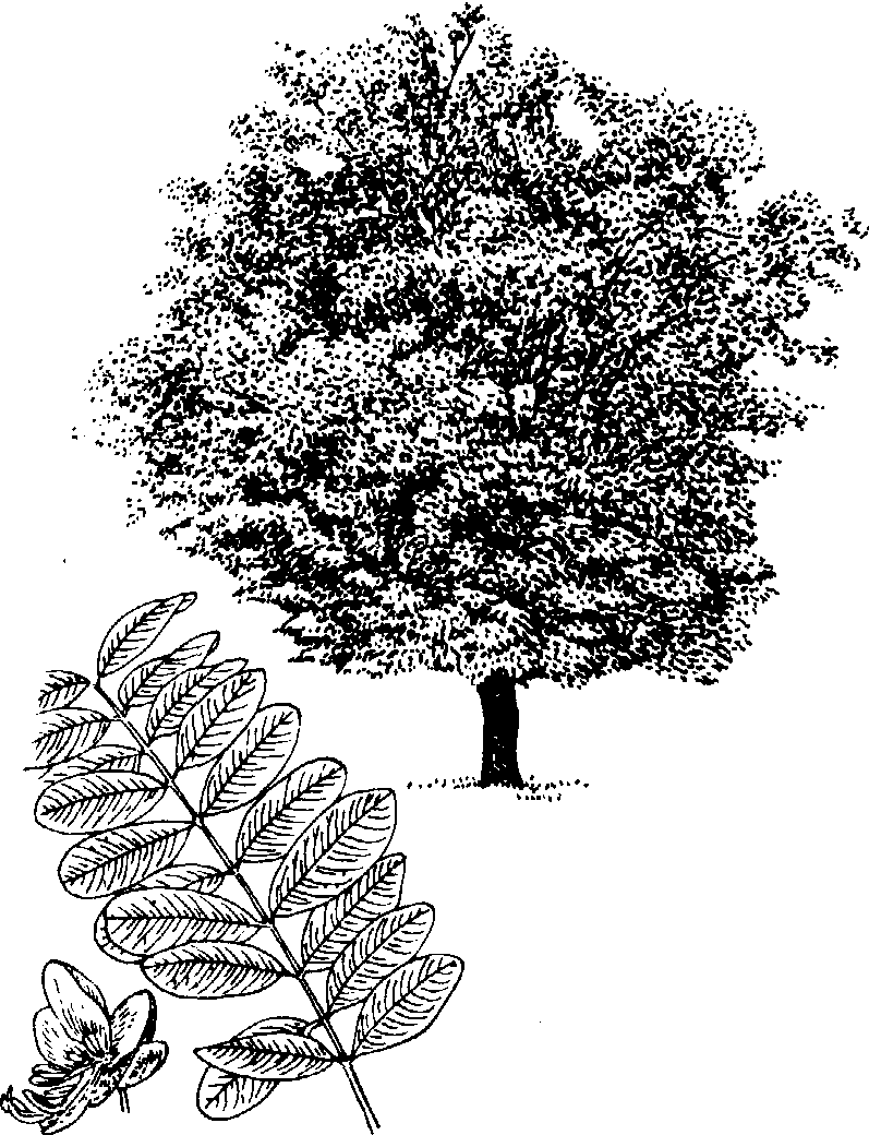 释义 | 部分树名 部分树名杨树:杨(垂~) ☚ 部分树名 柳树 ☛ 黄槐yellow scholar treeCassia surattensis,苏木科决明属常绿乔木或灌木。染色体数2n = 2x,4x=28,48。高可达10m。偶数羽状复叶,叶柄及总轴基部有腺体,小叶7~9对,长椭圆形至卵形,叶端圆而微凹。伞房状的总状花序,生于枝上部叶腋;花鲜黄色,径约5cm,全年有花,9~10月最盛。荚果扁平,果期冬季至次春。喜高温、多湿及阳光充足。产南亚等地。中国华南早有引种,四川西南及云南、贵州亚热带地区也有栽培。播种繁殖,1年生苗高30~40cm,3年生可达2m以上,定植后当年开花。主要虫害有袋蛾,可用90%敌百虫800~1000倍液喷杀;病害有叶绣病,可用石硫合剂防治。本种树冠较大,花期长,花色艳,华南用作行道树。 同属植物约400余种,华南常见栽培的有:腊肠树(C.fistula),别名牛角树。大乔木,偶数羽状复叶,小叶4~8对,花序下垂,长达30cm,花淡黄色,夏季开花,极美观。荚果圆柱形,黑褐色,长达30~60cm。产南亚。铁刀木(C. siamea),大乔木,高达20m。偶数羽状复叶,小叶6~10对。花序顶生或生于叶腋,花黄色,花期秋季。产东南亚。 黄槐largeanther sennaCassia surattensis Burm.f.,又称黄槐决明、金凤。豆科,铁刀木属。小乔木或灌木。树皮灰褐色,平滑。偶数羽状复叶;小叶7~9对,椭圆形,长2~3.5cm,基部稍偏斜,下面带粉白绿色,疏生平伏柔毛,叶轴下部2~3对小叶间各具一棍棒状腺体。花序伞房状,腋生,长5~8 cm,花黄色。荚果带状,长7~11 cm,宽1~1.3 cm,具长尖喙,果缘波状,有时微缢缩。种子10~12,扁,椭圆形,有光泽。原产南亚、东南亚及大洋洲;中国广东、海南、福建、台湾、广西、贵州、四川等省区栽培为行道树、观赏树或绿篱。叶亦可为缓泻剂。 |