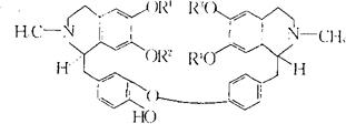 释义 | 北豆根 【概况】: 异名 蝙蝠藤(《纲目拾遗》),山豆根(药材名),北豆根(《中国药典》)。 基源 为防己科蝙蝠葛属植物蝙蝠葛的根茎。蝙蝠葛属全世界约2种;中国仅1种,供药用。 原植物 蝙蝠葛Menispermum dauriicum DC.,又名山豆秧根、苦豆根(内蒙古),蝙蝠藤(浙江)。 历史 蝙蝠藤始见于《纲目拾遗》,载:“此藤附生岩壁、乔木。及人墙茨侧,叶类蒲萄而小,多岐,劲厚青滑,绝以蝙蝠形、故名”。北豆根一名始见于《中国药典》,有“北方用的山豆根”之意,而与南方所产的山豆根现名广豆根相区别。 近年来药厂从中提取生物碱制成片剂及针剂应用。 形态 多年来生缠绕性草本。 长达10m以上,全体近无毛。根状茎多横生,细长。茎基部梢木质,小枝绿色,有纵条纹。叶互生;叶柄盾状著生,长6~12cm,被稀短毛;叶片圆肾形或卵圆形,长宽均约5~15cm,先端尖,基部心形或截形,叶缘近全缘或5~7浅裂,裂片近三角形,叶面绿色,背面苍白色,具掌状脉5~7条。 花序腋生,短圆锥状,花小,单性异株;雄花序总花梗长3~7cm,花梗长5~7mm,基部具小苞片1,线状披针形,雄花萼片6,窄倒卵形,花瓣卵圆形,较花萼小;雄蕊10~20,花药球形;雌花通常具3心皮,分离、花柱短。核果球形,熟时黑紫色。 种子1,马蹄形。花期6~7月,果期7~8月。 (图见《中药志》.第1册.第55页.第2版.图39) 生境与分布 生于山地灌丛中或攀援岩上。分布于华北、华东、东北、中南、陕西、四川、贵州。药材北豆根主产于华北、东北及陕西。一般多自产自销。 。【生药】: 采集 春秋两季采挖,除去茎叶、须根和泥土,晒干。 鉴别 性状 根茎长圆柱形,常弯曲,有时可见分枝,长约50cm,直径3~8mm;表面黄棕色至暗棕色,有纵皱纹及稀疏的细根或凸起的细根痕,外皮易成片脱落。质韧,不易折断,折断面不整齐,纤维性,维管束呈放射状排列,木质部淡黄色,中心有类白色的髓。气微,味苦。 以条粗长、外皮色黄棕、断面色浅黄者为佳。 显微 根茎(直径约5mm)横切面:表皮细胞一列,外被厚的棕黄色角质层,表皮下方常有断续的木栓层产生,具明显皮孔。皮层细胞多列,有单个石细胞散在,石细胞呈分枝状、不规则形、类圆形或类方形。中柱鞘纤维排列成新月形,两侧有石细胞群,石细胞类圆形或椭圆形。韧皮部均为薄壁性细胞。束间形成层不明显。木质部导管、管胞、木纤维及木薄壁细胞均木化;木薄壁细胞具纹孔,并常1~3列径向排在木质部束两侧。射线细胞宽5~13列,有石细胞散在。髓细胞具纹孔。 本品薄壁细胞中含细小淀粉粒及小草酸钙结晶。(图见《中药志》.第1册.第2版.图40) 粉末:灰棕色,气微,味苦。 ❶ 石细胞,常单个散在,淡黄色或鲜黄色,大多呈特异不规则分枝状,有2~7分枝,个别分枝又有短分枝,顶面观宛似数个细胞重叠,直径43~173μm,少数长至370μm,壁厚12~34μm,有的具1~3个横隔,分2~4小腔,内含棕色物或细小草酸钙砂晶;另有少数石细胞呈类圆形、类长方形或类三角形,直径26~87μm。 ❺ 木纤维常与导管毗连,纤维管胞末端尖,直径12~32μm,壁厚3~5μm,有具缘纹孔,纹孔口斜裂缝状,韧型纤维少数,具单斜纹孔或交叉成十字形。另可见导管、淀粉粒、表皮细胞及木栓细胞。 (图见《中药材粉末显微鉴定》.图103) 理化 取样品粉末2g,加氨试液1.5ml及苯15ml,振摇,过夜,滤过,滤液用0.5%硫酸16m1分4次提取,合并酸液,用浓氨水碱化,再以氯仿20m1分4次提取,合并氯仿液,加无水硫酸钠少许脱水,滤过,蒸去氯仿至约0.8ml,点于硅胶G板上,以氯仿-甲醇-氨水(8∶2∶)1滴为展开剂,以山豆根为对照。展距18cm,用改良碘化铋钾试剂显色。 (图见《中药材薄层色谱鉴别》.图47) 加工炮制 取原药材,除去杂质及残茎,大小个分开,浸泡至六七成透时,捞出,闷润至透,切薄片,干燥。 。【化学】: 含总生物碱约1%以上,其中以蝙蝠葛碱和蝙蝠葛任碱含量较多[1]。 从不同地区产的北豆根中,分离得到的双苄基四氢异喹啉生物碱:蝙蝠葛碱(Dauricine)(1)、蝙蝠葛诺林碱(Daurinoiline)(2)、蝙蝠葛新诺林碱(Dauricineoline)(3)、蝙蝠葛苏林碱(Daurisoline)(4)、蝙蝠葛可林碱(Dauticoline)(5)、蝙蝠葛新林碱(Dauriciline)(6)[2];阿朴啡季铵型碱:木兰碱(Magnoflorine)(7)、蝙蝠葛任碱(Menisperine)(8);氧化异阿朴啡生物碱:蝙蝠葛辛碱(Bianfugecine)(9)、蝙蝠葛宁碱(Bianfugenine)(10)、蝙蝠葛定碱(Bianfugedine)(11)、蝙蝠葛啡碱(Menisporphine)(12)、二氢蝙蝠葛啡碱(2,3-Dihydro-menisporphine)、去甲蝙蝠葛啡碱(6-O-Demethylmenisporphine)(13)、蝙蝠葛啡诺林碱(Dauriphinoline)(14)[3]。 此外,还有青藤碱(Sinomenine)、青藤防己碱(Acutumie)、N-去甲青藤防己碱(Acutumidine)、光叶千金藤碱(Stepharine)、碎米蕨叶碱(Cheilanthifoline)、光叶千金藤定碱(Stepholine)等。 附 叶中含青藤碱、双青藤碱(Disinomenine)、千金藤碱(Stephanine)、青藤防己碱及青藤防己次碱(Acutuminine)等。 R1 R2 R3 R4 (1) CH3 CH3 CH3 CH3 (2) CH3 CH3 H CH3 (3) H CH3 CH3 CH3 (4) CH3 H CH3 CH3 (5) H CH3 H CH3 (6) CH3 H CH3 H (7) R=H (8) R=CH3 R1 R2 R3 (9) H OCH3 H (10) OCH3 OCH3 OCH3 (11) H -O-CH2-O (12) H OCH3 OCH3 (13) H OCH3 OH (14) OCH3 OCH3 OH 参考文献 [1]中草药学.中册.江苏人民出版社,1986∶289 [2]药学学报 1991;26(5)∶387 [3]中国药科大学学报 1990;21(6)∶377 。【药理】:❶ 抗心律失常作用 在猫乳头肌观察蝙蝠葛碱对心肌收缩性、自律性、不应期和兴奋性的影响,发现蝙蝠葛碱32μmol/L明显抑制其收缩力,15~20min时作用达高峰,收缩幅度降至给药前的72±6%。 用肾上腺素诱发乳头肌自律性,给予蝙蝠葛