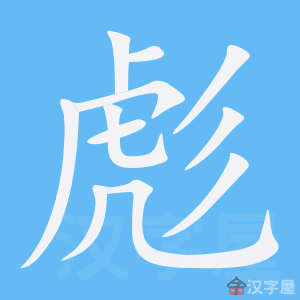 字源解说 彡,既是声旁也是形旁,是“髟”的省略,表示长发。彪,金文 = (虎)+ (彡,“髟”,长发),表示老虎浑身长毛上的斑纹。为适应丛林环境,老虎进化出丛林迷彩,在或红或黄或棕的背景色上,间夹黑色条纹。造字本义:虎毛上威风凛凛的斑纹。篆文 将金文的左右结构调整成包围结构。隶化后楷书 将篆文的 写成 。 附 文言版《説文解字》:彪,虎文也。从虎,彡象其文也。 附 白话版《说文解字》:彪,虎纹。字形采用“虎”作边旁,“彡”像老虎的环形斑纹。 引申线索