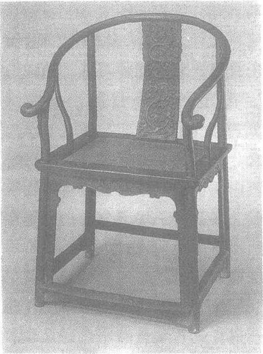 明。亦称“太师椅”或“圆椅”。坐面长63厘米,深49.5厘米,座高52厘米,通高103厘米。北京故宫博物院藏。圈背与扶手一体,呈弧形顺势而下,扶手头向外侧翻卷。软屉,壶门券口,牙条上阳刻卷草纹,背板卷草纹间浮雕两条腾旋的螭龙。这种椅子比例合度和谐,就坐舒适,造型圆婉优美,体态沉稳劲健,是独具民族特色的椅式之一。