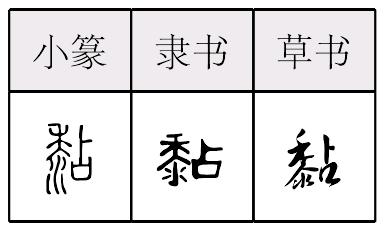 nián形声,从黍,占声,本义为用黍米煮成糊,使两个物体相胶合或连接,引申为像糨糊、胶水等有黏性的。 【辨析】 ❶《异体字表》把“黏”作为“粘”的异体字,《通用字表》作为规范字。 ❷黏/粘 见539页“粘”。 |