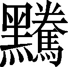 黑皃。例:天~地伸手不见五指。《玉篇》:“,黑皃。”《广韵》,音:徒红切。