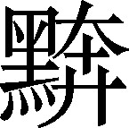 面黑额头突出皃。例:颅、颅下雨不愁,你有阳伞,我有~(儿戏语)。《玉篇》:“,黑。”《集韵》:“,黑也。”