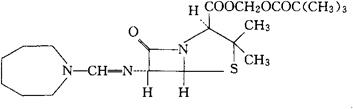 C21H33N3O5S=439.57 CAS-32886-97-8 6-[(六氢-1H-氮杂 -1-基)亚甲氨基]青霉烷酸羟甲酯,三甲基乙酸酯。 Hydroxymethyl6-[(hexahydro-1H-azepin-1-yl)methyleneamino]penicillanate pivalate. 抗生素类药。 氮 咪青霉素双酯(中),氮 西林酯。 Amdinocillin,Pivoxil,Selexid,Coactabs,Pivmecillinam. INN,BAN,DCF,DCIT,USAN,MI.