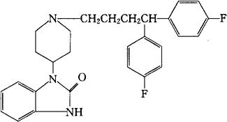 释义 | 匹莫齐特 C28H29F2N3O=461.55 CAS-2062-78-4 1-[1-[4,4-双(对-氟苯基)丁基]-4-哌淀基]-2-苯并咪唑啉酮。 1-[1-[4,4-bis(p-Fluorophenyl)butyl]-4-piperidyl]-2-benzimidazolinone. 抗精神病药。 氟哌咪唑。 Pimozide,Opiran,Orap,Pimotid,Fupaimizuo. INN,BAN,DCF,DCIT,GDP,JAN,NFN,USAN,MI. |