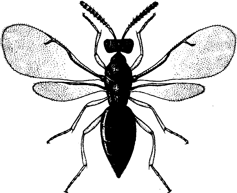 黑青小蜂 寄生习性 在湖北一年发生11~12代,以幼虫或蛹在越冬红铃虫的茧内越冬,3月化蛹,4月初羽化为成虫,4月上中旬在棉仓内进行寄生活动,5~6月寄生率上升,7~8月气温高,一部分转到仓外其他寄主上繁殖。每雌产卵50~60粒,寄生红铃虫5~10头,最多可达22头;卵产于寄主体外,孵化后幼虫在体表取食,有的刺死红铃虫后,吸取体液,而不在寄主的体内产卵。繁殖利用 20世纪30年代,阿根廷曾饲育散放这种蜂防治大蜡螟。1955~1957年中国利用红铃虫大量繁蜂成功,1960年推广到全国12个省(市、自治区)。放蜂仓库内,对越冬红铃虫寄生率达75~95%,使第一代红铃虫对附近棉田花害率降低60~70%。 选育优良种蜂。冬季采集越冬红铃虫茧,放在温箱、温室或饲养盒内繁殖,保持温度18~25℃,相对湿度70~80%;按5头红铃虫接1头雌蜂,25~30天即可出蜂;冬春可以繁殖3代以上,可在冬季自然低温下贮存,翌年3月下旬至4月上旬在棉仓内释放。每5 000公斤籽花放蜂1 000头。经两代繁殖,越冬红铃虫被寄生率可达到80%左右。 |