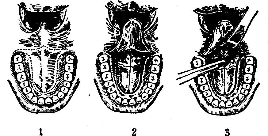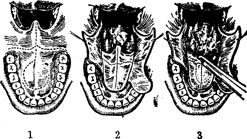 (1)经鼻腔、鼻窦: 包括 ❶不作切口直接经前鼻孔。 ❷鼻正中或鼻侧切开。 ❸鼻外额筛窦手术切口加鼻侧切开。 ❹鼻侧、上唇正中及唇龈沟切口(Weber-Fergusson切口)。 (2) 经腭: 包括 ❶硬腭U形切口(Wilson切口)及其变式,为了扩大术野,可将一侧腭大动脉结扎,将切口后延1~2cm,并凿去翼钩。 ❷软硬腭联合切口或“秤钩形”切口,从距悬雍垂根部约1cm处正中切开至硬腭缘,然后转向非手术侧第2磨牙,再沿牙弓作弧形切口(距牙龈缘0.6~0.8cm),直至手术侧第2磨牙,如仍暴露不佳,则上述软腭部分的切口可改由悬雍垂根部任一侧开始,将整个软腭切开。 经腭部途径手术之一 经腭部途径手术之二 (3) 联合径路: 即同时经鼻腔、鼻窦和经腭部的径路。 (4) 其他径路: 如颈侧径路和舌骨上径路,因多系避近就远,不切合实用。 究应选择何种途径,应视患者具体情况而定,以有利于彻底切除肿块,减少失血,损伤组织少及保持面容为原则。扩展广泛的肿瘤,常需用联合径路; 对于延伸至翼颌窝、颊部和颞下窝的肿瘤,可沿牙龈沟粘膜绕至上颌结节后方,加作唇下切口,便于在同一体位从腭和从颊侧两个方向剥离和切除肿瘤。颞下窝肿块有时还需作颧部皮肤补充切口,并切断颧弓以摘除肿块; 有颅内延伸者,可与神经外科协作,采取颅内和颅外的联合径路(Krekorian等,1977),即先开颅,暴露中颅窝,从瘤体远端游离至伸入颅内的骨性缺损处,视情况立即切除或留待下一步颅外手术时一并切除; 如发现肿块无法切除,则应终止手术; 瘤体如有大量颅内血管供应,即使未向颅内侵犯,也应考虑结扎颈内动脉,然后进行颅外手术。 切除肿瘤的基本原则是快速准确、干净利落。带蒂的小肿瘤可经前鼻孔用圈套法切除。基底略宽的稍大肿瘤,可用左手食指经口伸入鼻咽,托住瘤体,右手持适当的剥离器经前鼻孔插入鼻咽基底部进行骨膜下剥离。以上二法均应准备鼻咽部填塞止血纱球。大肿瘤须经腭或经鼻等单一或联合径路切除者,先用手指摸清肿瘤的基底和范围,继用坚固的锐利剥离器或特制弯铲子从基底周边约0.5cm处的骨膜下迅速进行剥离,如出血凶猛,可在已部分剥离的瘤体与创面间填压长纱条,或直接将瘤体紧压创面。如瘤体过大,难于一次取出,可先切除位于鼻咽腔的大部分瘤体,伸入鼻腔、鼻窦的部分,可用大直角钳夹持其后上基底向后拉,同时用另一钳通过前鼻孔夹持肿块向后推。对伸入蝶腭孔不远的肿块,可一面持钳牵引,一面用直角剥离器沿被膜剥离。切忌盲目剪除,因可遗留残体,将增加出血。全部切除肿瘤后,出血即可明显减少,此时可用温热盐水纱布暂时填压,然后仔细检查术腔各处,清除残体,剪齐剥离过程中所撕裂的粘膜,作稳妥的前后鼻孔填塞,缝合切口。 术后处理: 密切观察有无出血,使用抗生素和止血药物,注意水电解质平衡,供应足够的营养;做好气管切开术后的护理,并及时拔除气管套管; 保持口腔卫生;48~72小时后开始逐渐抽取前后鼻孔的填塞物,切勿一次全部抽取,以防大出血。 ☚ 扁桃体切除术 咽切开术 ☛ |