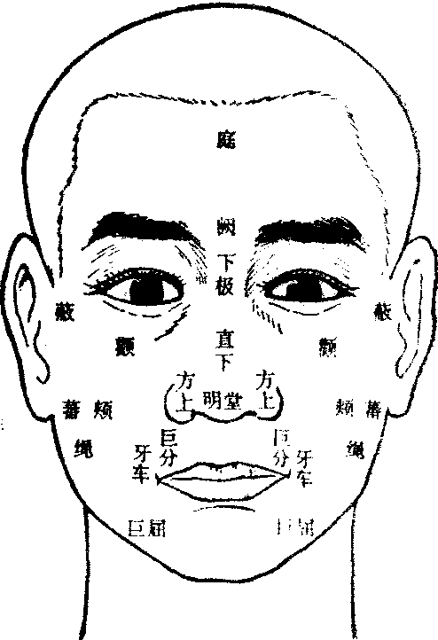 鼻的部位分属理论及分法见于《内经》,《灵枢·五色篇》说:“庭者,首面也; 阙上者,咽喉也;阙中者,肺也;下极者,心也;直下者,肝也;肝左者,胆也;下者,脾也;方上者,胃也;中央者,大肠也;挟大肠者,肾也; 当肾者,脐也;面王以上者,小肠也; 面王以下者,膀胱子处也;颧者,肩也;颧后者,臂也; 臂下者,手也;目内眦上者,膺乳也;挟绳而上者,背也; 循牙车以下者,股也;中央者,膝也;膝以下者,胫也;当胫以下者,足也; 巨分者,股里也; 巨屈者,膝膑也。此五藏六府肢节之部也,各有部分,用阴和阳,用阳和阴,当阴部分,万举万当,能别左右,是谓大道。男女异位,故曰阴阳。”