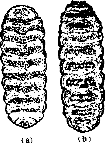 图2 羊狂蝇第三期幼虫 (a)腹面 (b)背面 |