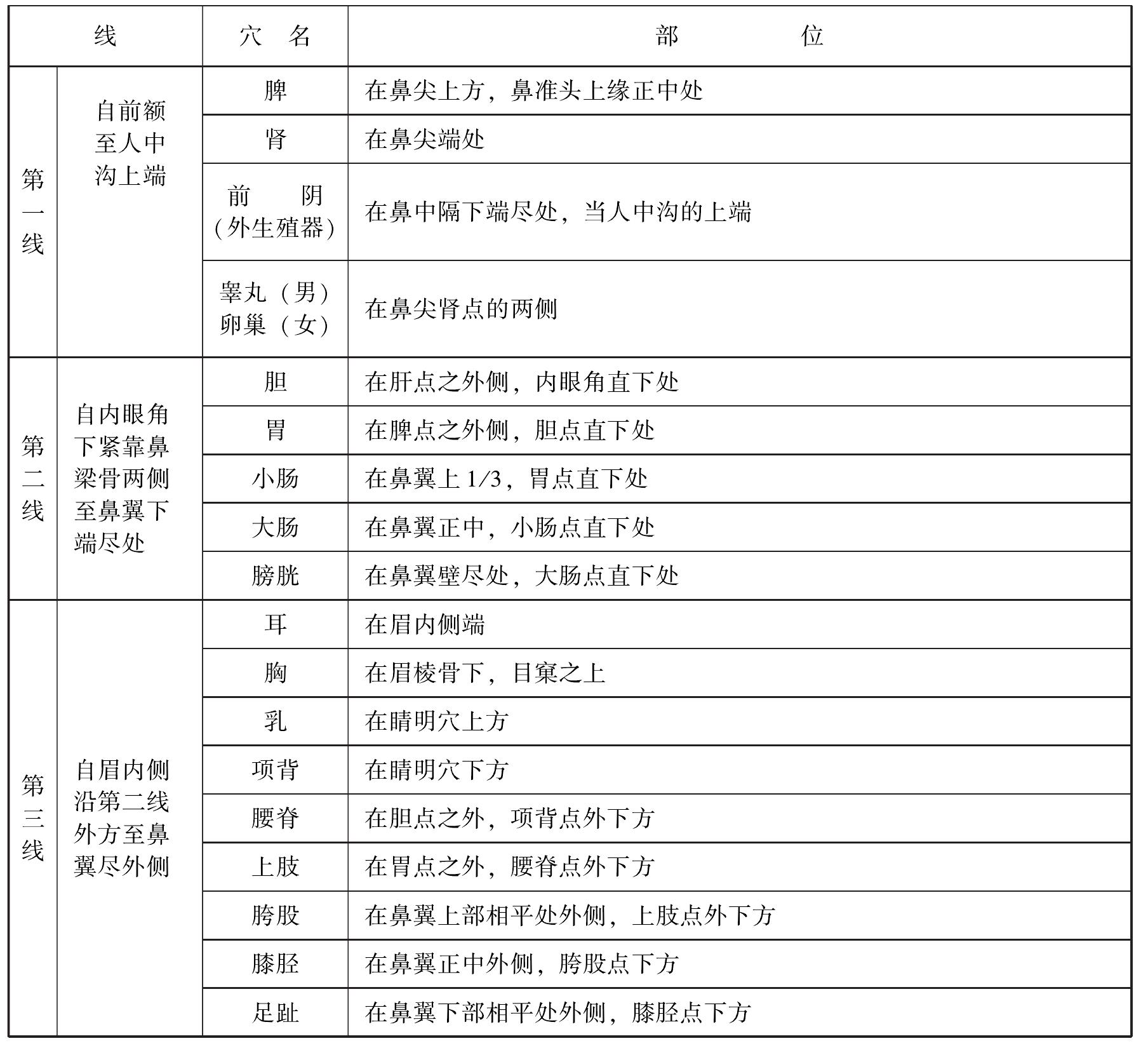 释义 | 鼻针疗法是指以针刺鼻上特定部位来治疗疾病的方法。鼻和经络脏腑有密切联系,“十二经脉,三百六十五络……其宗气上出于鼻而为臭。”(《灵枢·邪气脏府病形》)。《灵枢·五色》明确指出,“明堂者鼻也。”“五脏次于中央,六府夹其两侧。”近30年来,我国广大医务工作者据此创造出鼻针疗法,并应用于针刺麻醉。临床操作时,据疾病处所选取相应部位,以短毫针斜刺进针,不宜穿透鼻甲,因鼻部感觉敏锐,应避免过重刺激,一般留针15~30分钟,其间可运针数次,并可使用电针。本法适用范围很广,身体各部疾患均可选取相应穴位治疗。 鼻针疗法针刺鼻部特定穴位的一种治疗方法。简称鼻针。鼻与人体脏腑、气血、四肢等都有一定对应关系,所以针刺鼻部的穴位可以调整机体相应部分的功能以治疗疾病。鼻针穴位的分布,上至前额中心,下至鼻端,旁至颧骨内侧。施针时先用针柄或经络探测器测出有关疾病的敏感点,然后用半寸长毫针斜刺或透刺,有针感后留针10~20分钟。一般十次为一疗程,两个疗程之间间隔5~7天。 鼻针疗法bízhēnliáofǎ针刺鼻部特定穴位的一种治疗方法。针刺得气后, 留针10 ~30 分钟, 每隔5 ~ 10 分钟捻转一次, 亦可用皮内埋针法。本法适用范围很广, 一般常见病症均可取其相应穴位治疗, 如胃痛取脾胃穴, 肝区痛取肝、胆穴等。因鼻部感觉敏锐, 肌肉较薄, 刺激不宜过强。鼻针穴位见图及表。 鼻针穴位分布图 鼻针穴位表 续 表 鼻针疗法bi zhen liao fa【医学】nose-acupuncture therapy 鼻针疗法nose acupuncture therapy 鼻针疗法bí zhēn liáo fǎnose acupuncture therapy |
