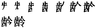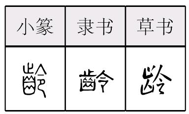 龄齡líng(13画) *龄(齡)líng13画 齿部 龄齡líng甲骨文以来有“令”。象人在屋下发号施令。约东周时用为年龄的龄。中古时造龄字,加齿旁。齿字甲骨文至战国文字从口,象口内有齿形。战国晚期因形略变较难认,加“止”表声。小篆以后都从象形的“齿”,从“止”声。小篆以后的齿字作齒。下部里面四个小“人”字象齿形。现在群众简化作齿。从一“人”,简单易学易用。现作规范字。见《总表》。偏旁类推齡简化作龄。指岁数。如:高龄。组词如:年龄。引申为年数。如:工龄|党龄。 龄齡★繁◎常★常línɡ齡,形声,从齒,令声,本义为岁数,引申为年数。《简化字表》类推简作“龄”。 |