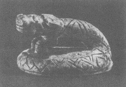 释义 | 龙纽石盖 龙纽石盖商。高3厘米,长径5.4厘米,短径4.5厘米,厚0.8厘米。1976年河南省安阳殷墟妇好墓出土的石礼器之一,亦或为“弄器”(即玩器)。大理石质,灰白色,椭圆形。龙长躯盘缠盖壁一圈后,前肢弯曲撑颈,微仰首,张口露舌,睁大双眼作观望状。其遍体刻饰三角纹,菱形纹。龙颈下纽部中空处刻一“十”字形纹,其间雕刻两个短身小尾,张口以头相对的夔纹。此盖刀法圆熟,风格古拙,堪称商代雕刻家匠心独运的成功之作。 ☚ 雕塑 石雕带盖觯 ☛ |