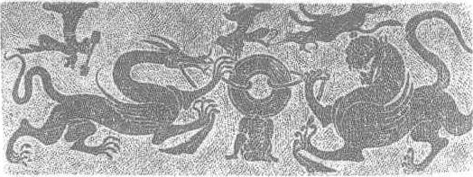 释义 | 龙虎争璧、牛郎织女画像石 龙虎争璧、牛郎织女画像石东汉。长69厘米,宽227厘米。1974年四川省郫县新胜乡出土。四川省博物馆藏。由浅浮雕及阴线刻法刻成。两图同刻在石棺盖面上。一边为龙虎争璧:龙曲颈伸吻,两后爪用力攫地,左前爪拉住由一力士跪坐支承着的绶带,怒视着璧另一侧的老虎;虎则以右前爪抓绶带,鼓胸梗颈,用力向后拽,与龙相持不下。另一边为牛郎织女:牛郎头戴山形冠,右手牵着四蹄腾空的老牛,左手振臂呼喊,跨步向前,直奔头挽双髻,手执线板,疾行而来的织女,形态颇为生动。此画像石将一聚一散,两种情调、意境迥然不同的画面组合在一起,堪称匠心独运的佳作。 ☚ 白鹤梁石刻 梦幻图石刻线画 ☛ |