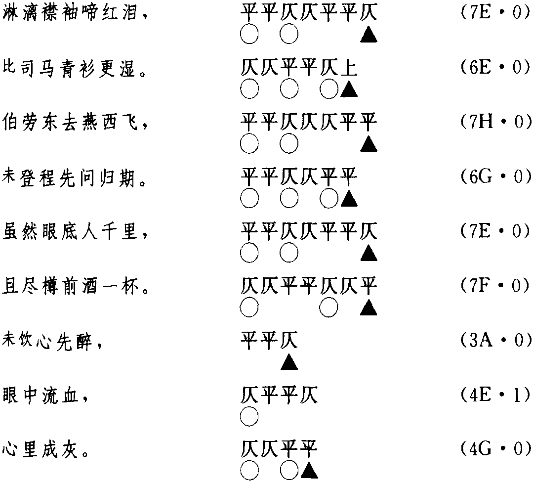释义 | (11)王实甫《[般涉调]耍孩儿·淋漓襟袖啼红泪》 (11)王实甫《[般涉调]耍孩儿·淋漓襟袖啼红泪》《耍孩儿》为曲牌名,属般涉调曲调。句式为7—6—7—6—7—7—3—4—4。4平韵,4仄韵。这首曲中,有4个衬字。 这首曲,共押八个字韵,详况如下: 泪 读音l·ei (ˋ)。力遂切,去,至韵。为ei韵目,属i—ei—ui韵部。 湿 读音sh·i (-)。失入切,入,缉韵。为i韵目,属i—ei—ui韵部。 飞 读音f·ei (-)。甫微切,平,微韵。为ei韵目,属i—ei—ui韵部。 期 读音q·i (-)。渠之切,平,之韵。为i韵目,属i—ei—ui韵部。 里 读音l·i (ˇ)。良士切,上,止韵。为i韵目,属i—ei—ui韵部。 杯 读音b·ei (-)。布回切,平,灰韵。为ei韵目,属i—ei—ui韵部。 醉 读音z ·ui (ˋ)。将遂切,去,至韵。为ui韵目,属i—ei—ui韵部。 灰 读音h·ui (-)。呼灰切,平,灰韵。为ui韵目,属i—ei—ui韵部。 在今韵方面,这八个韵字,所押的韵是i—ei—ui韵部(第920韵部)。 在古韵方面,押之韵(上平07)、微韵(上平08)、灰韵(上平15)、至韵(去声06)、止韵(上声06)、缉韵(入声26)。 ☚ (10)王实甫《[中吕宫]四边静·杯盘狼藉》 (12)王实甫《[般涉调]煞·服水土》 ☛ |