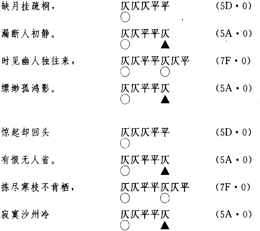 释义 | (14)苏轼《卜算子·缺月挂疏桐》 (14)苏轼《卜算子·缺月挂疏桐》《卜算子》一词,因黄庭坚词中有“似挟着,卖卜算”句而得名。《卜算子》又名《缺月挂疏桐》、《百尺楼》、《楚天遥》、《眉峰碧》等。双调《卜算子》44字,前后片各4句各2仄韵。 这首词,共有四个仄声字韵,详况如下: 静 读音j·ing (ˋ)。疾郢切,上,静韵。为ing韵目,属ing—eng韵部。 影 读音·ing(ˇ)。於境切,上,梗韵。为ing韵目,属ing—eng韵部。 省 读音x·ing (ˇ)。息井切,上,静韵。为ing韵目,属ing—eng韵部。 冷 读音l·eng (ˇ)。力鼎切,上,迥韵。为eng韵目,属ing—eng韵部。 在今韵方面,以上四个韵字,所押的韵为ing—eng韵部(第410韵部)。 在古韵方面,押梗韵(上声38)、静韵(上声40)。此二韵并不相邻但却可通押。另外还有迥韵(上声41),它是独用的。 ☚ (13)秦观《减字木兰花·天涯旧恨》 (15)欧阳修《采桑子·群芳过后西湖好》 ☛ |