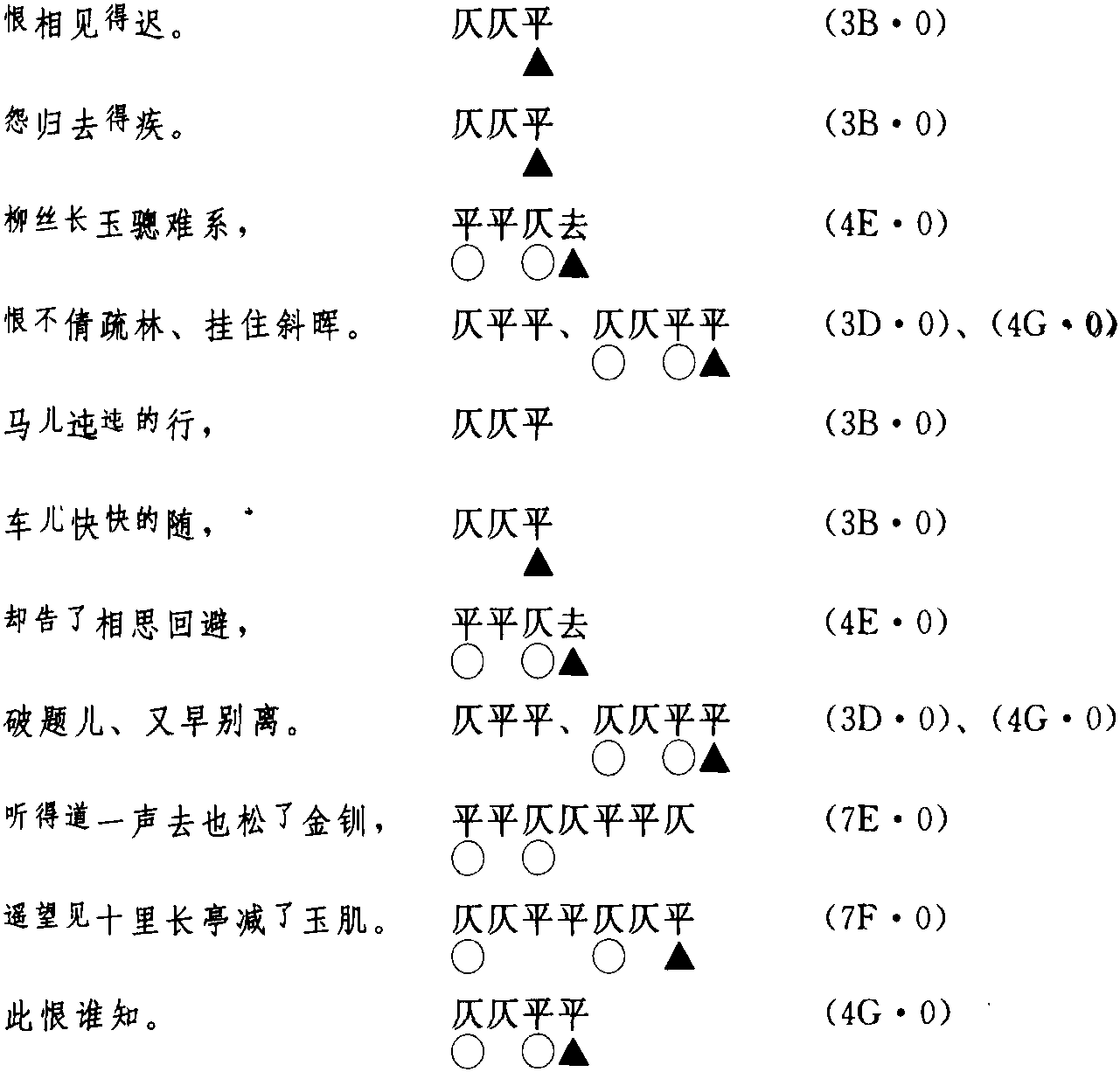 释义 | (2)王实甫《[正宫]滚绣球·相见迟》 (2)王实甫《[正宫]滚绣球·相见迟》《滚绣球》为曲牌名,属正宫曲调。单片;句式为3—3—4—7—3—3—4—7—7—7—4;为7平韵,2仄韵(皆为去声韵)。这首曲中,有26个衬字。 这首曲押了九个字韵,详况如下: 迟 读音ch·i (ˊ)。直尼切,平,脂韵。为i韵目,属i—ei—ui韵部。 疾 读音j·i (ˊ)。秦悉切,入,质韵。为i韵目,属i—ei—ui韵部。 系 读音j·i (ˋ)。胡计切,去,霁韵。为i韵目,属i—ei—ui韵部。 晖 读音h·ui(-)。许归切,平,微韵。为ui韵目,属i—ei—ui韵部。 随 读音s·ui(ˊ)。旬为切,平,支韵。为ui韵目,属i—ei—ui韵部。 避 读音b·i (ˋ)。毗义切,去,寘韵。为i韵目,属i—ei—ui韵部。 离 读音l·i (ˊ)。吕支切,平,支韵。为i韵目,属i—ei—ui韵部。 肌 读音j·i (-)。居夷切,平,脂韵。为i韵目,属i—ei—ui韵部。 知 读音zh ·i (-)。陟离切,平,支韵。为i 韵目,属i—ei—ui韵部。 在今韵方面,这九个字韵所押的韵是i—ei—ui韵部(第920韵部)。 在古韵方面,押支韵(上平05)、脂韵(上平06)、微韵(上平08)、寘韵(去声05)、霁韵(去声12)、质韵(入声05)。 ☚ (1)王实甫《[正宫]端正好·碧云天》 (3)王实甫《[正宫]叨叨令·车儿马儿熬煎气》 ☛ |