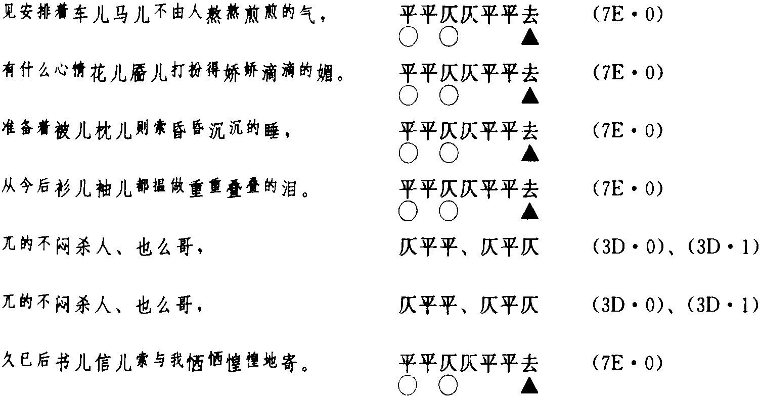 释义 | (3)王实甫《[正宫]叨叨令·车儿马儿熬煎气》 (3)王实甫《[正宫]叨叨令·车儿马儿熬煎气》《叨叨令》为曲牌名,属正宫曲调。单片;句式为7—7—7—7—6—6—7;5仄韵(皆为去声韵)。这首曲中,有53个衬字,衬字数比曲正文字数(47字)还多。 这首曲的第五、第六句的三尾字“也么哥(或也波哥)”为定格字,不能变;这三个字为语助词,无具体意义。这首曲押五个仄声字韵,详况如下: 气 读音q·i (ˋ)。去既切,去,未韵。为i韵目,属i—ei—ui韵部。 媚 读音m·ei (ˋ)。明秘切,去,至韵。为ei韵目,属i—ei—ui韵部。 睡 读音sh·ui (ˋ)。是伪切,去,寘韵。为ui韵目,属i—ei—ui韵部。 泪 读音l·ei (ˋ)。力遂切,去,至韵。为ei韵目,属i—ei—ui韵部。 寄 读音j·i (ˋ)。居义切,去,寘韵。为i韵目,属i—ei—ui韵部。 在今韵方面,这五个韵字所押的韵是i—ei—ui韵部(920韵部)。 在古韵方面,押寘韵(去声05)、至韵(去声06)、未韵(去声08)。 ☚ (2)王实甫《[正宫]滚绣球·相见迟》 (4)王实甫《[正宫]脱布衫·下西风黄叶纷飞》 ☛ |