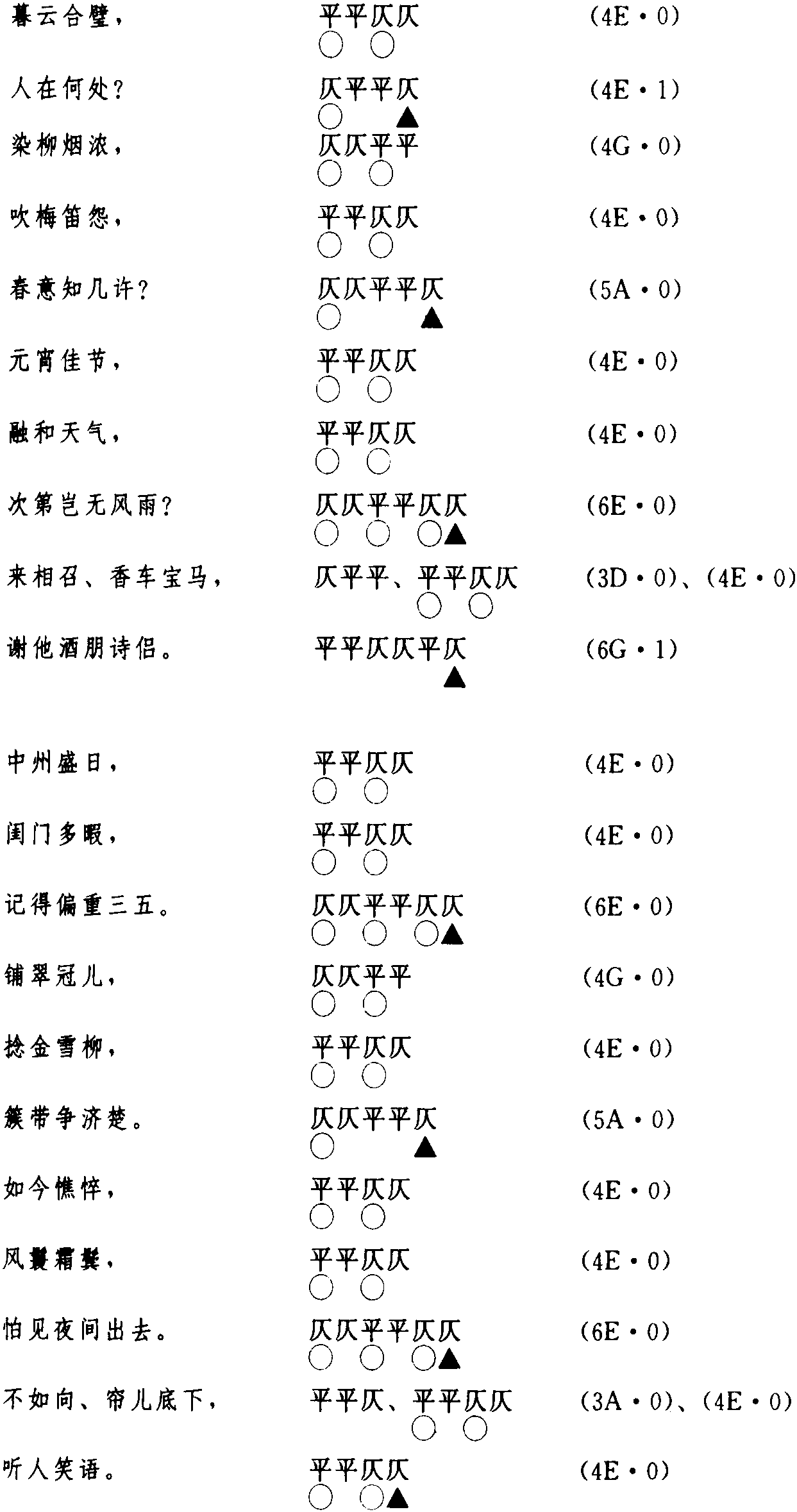 释义 | (46)李清照《永遇乐·落日镕金》 (46)李清照《永遇乐·落日镕金》《永遇乐》又名《消息》等。《永遇乐》一词系双调,104字,前后片各11句,各4仄韵。 这首词,押八个仄声韵,详况如下: 处 读音ch·u (ˋ)。昌据切,去,御韵。为u韵目,属u—ü韵部。 许 读音x·ü(ˇ)。虚吕切,上,语韵。为ü韵目,属u—ü韵部。 雨 读音·ü(ˇ)。玉巨切,上,麌韵。为ü韵目,属u—ü韵部。 侣 读音l·ü(ˇ)。力举切,上,语韵。为ü韵目,属u—ü韵部。 五 读音·u (ˇ)。疑古切,上,姥韵。为u韵目,属u—ü韵部。 楚 读音ch·u (ˇ)。创举切,上,语韵。为u韵目,属u—ü韵部。 去 读音q·ü(ˋ)。丘倨切,上,御韵。为ü韵目,属u—ü韵部。 语 读音·ü(ˇ)。鱼巨切,上,语韵。为ü韵目,属u—ü韵部。 在今韵方面,以上八个韵字,所押的韵是u—ü韵部(第610韵部)。 在古韵方面,押语韵(上声08)、麌韵(上声09)、姥韵(上声10)、御韵(去声09)。 ☚ (45)柳永《雨霖铃·寒蝉凄切》 (47)苏轼《沁园春·孤馆灯青》 ☛ |