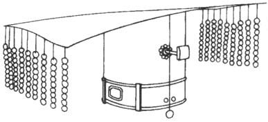 按,此即古代帝王所戴的冕。 它起源于上古,晋、唐以后的历代帝王礼服多用此饰。其基本形制为:在冠上饰以长形冕板(称“綖”),且必取后高前低之势,使有俛俯之状(“冕”的名称即由此而得),綖前后饰垂旒,依戴用者地位而有等差,一般皇帝都用十二旒。因冕上为平板,故亦称为“平顶冠”。明初定制,冕前圆后方,玄表纁里,前后各十二旒,旒用五彩玉珠十二,五彩缫,十有二就,就间相去一寸;皇太子、亲王九旒,郡王、世子七旒。后更定:綖广一尺二寸,长二尺四寸(按:帝王礼服所用尺度皆据上古周尺标准,不受当代尺度变化影响),冠上有复,玄表朱里,余如旧。永乐初,定冕用皂纱为之;嘉靖初,又定冕制以圆匡。从近年在山东鲁王朱檀墓中出土的冕中,我们可形象了解当时的冕制。  |