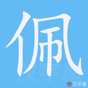 字源解说 佩,金文 = (是 的反写,即“人”)+ (是 的连写,即“丮”,手执)+ (精致绸带),造字本义:用精致的绸带系挂玉饰。有的金文 将 写成 ,在“巾” 上端加 (“又”的变形)表示抓持。篆文 误将金文字形中的“丮” 写成“凡” 。在古代,饰品系挂在身上叫“佩”,饰品套、插在头上叫“戴”。 附 文言版《説文解字》:佩,大帶佩也。从人,从凡,从巾。佩必有巾,巾謂之飾。 附 白话版《说文解字》:佩,宽大衣带上所佩带的饰物。字形采用“人、凡、巾”会义。佩物必系巾,佩物系巾,这称为“饰”。 引申线索