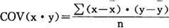 释义 | 协方差 【释文】: 也叫共差,它是两个定距变量或两个定比变量的各个指标值各减去其总体平均数后的乘积的总和,再除以总体个案数所得的商,其计算公式如下: 式中符号COV(x·y)表示两个变量x与y的协方差;x与y分别表示两个定距变量或两个定比变量的各个指标值;x与y分别表示这两个变量的总体平均数;n表示总体个案数;∑为连加符号。 协方差可用来分析两个定距变量或两个定比变量的相关程度。在平面直角坐标系中,各个散点的位置是由总体中的各个案所对应的指标值,即(x,y)所确定的。而两个变量的平均数即 协方差可用来分析两个社会变量之间的相关情况。这就是我们通常所说的积差相关方法,然而,由于协方差的数值具有绝对数的性质,即 因此需要清除 式中r为标准协方差,即人们通常所说的相关系数,αx、αy则分别为x、y两变量的标准差,其它符号与协方差计算公式中的符号含义相同。 |