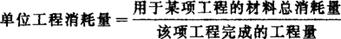 释义 | 单位工程消耗量 简称单耗。 指一定规格数量的建筑产品(或工程量)在施工过程中所消耗建筑材料的数量。其计算公式为: 式中,工程量的范围和材料总消耗量的内容要相适应。报废返工工程不包括在工程量中,而其耗用的材料要计入总消耗量。总消耗量还包括工程构件消耗的材料及施工过程中不可避免的材料损耗。 |