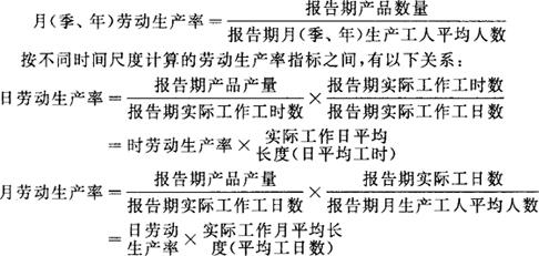 报告期企业单位时间(时、日、月、季、年)出产产品的产量。按照采用的时间单位的不同,分为时、日、月、季、年劳动生产率。其计算公式如下: