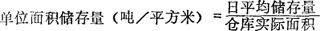 释义 | 单位面积储存量 仓储经济技术指标之一,指仓库实际面积平均每平方米储存货物的吨数,即日平均储存量与仓库实际面积之比。其计算公式为: 各系统、各级别的仓库对这一指标有不同的规定,如商业部要求,地、市级以上仓库每平方米储存量不少于0.7吨,县级仓库每平方米储存量不少于0.55吨 |