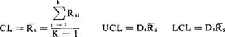 释义 | 单值和移动极差控制图(X—R5图) 这是把单值控制图和移动极差控制图联用的一种形式。 一般把单值控制图放在移动极差控制图的上方。这两种图的作用与 主要用于数据不便分组,或加工时间长,测量费用高,以及质量均一,只需取一个样品等场合。 单值控制图的中心线和控制界限的计算公式如下: 式中:CL表示中心线,UCL表示控制上限;LCL表示控制下限; 移动极差Rs为相邻两个数据之差的绝对值,即: 移动极差控制图的中心线、控制界限的计算公式如下: 式中:D3、D4可由控制图用系数表查得。 |