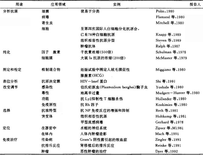 释义 | 单克隆抗体与杂交瘤技术 1975年,克勒(G.Koehler)和米尔斯坦(C.Milstein)报道了用细胞杂交技术将小鼠骨髓瘤细胞与预先用抗原免疫的小鼠脾细胞(淋巴细胞)进行融合,可产生能分泌预定的、单一特异性的抗体(单克隆抗体,简称单抗)的杂交瘤细胞。 此后,此项技术在生物学、医学的各个领域得到应用,并为抗体产生和免疫球蛋白(Ig)遗传控制及基因工程制造人单抗的研究提供有力的手段。 1890年,贝林(E.A.Von Behring)首先发现免疫动物血清中存在能特异性中和白喉毒素的抗体。 其后人们试图制造纯一的抗体和分析机体对某种免疫原的抗体反应。杂交瘤细胞由于继承了双亲的特点,既保存了骨髓细胞能在组织培养中无限迅速增殖的特性,又继承了亲代B细胞能产生特异性抗体的特性。 这一技术的优点为:(1)特异性高。(2)供应量无限。(3)可用不纯抗原进行免疫获得纯抗体。(4)只要该抗原能在动物(如小鼠)中引起免疫反应,就有可能获得(拯救)所有特异性的抗体。(5)提高特异性B细胞的比例10~100倍。 (6)B杂交瘤能产生高分泌量的抗体,且与原B细胞是否高产无关。(7)抗体可以人工操纵、改造,如可将两种特异性的杂交瘤再次融合产生能分泌双特异性抗体的杂交瘤。(8)此原理已成功地应用到T细胞杂交瘤技术,以拯救T细胞的功能。 下表简要说明单抗应用实例。 表1 单抗应用实例 有关杂交瘤技术 (1)免疫方法:许多不同的免疫方法和程序均有成功的报告,值得一提的是1984年施皮茨(m.spitz)的脾内免疫法,如果采用不开腹手术注射法更便于推广。此外,体外免疫法不仅对制造小鼠单抗有用,而更适合于制造人单抗。人B细胞体外免疫加氨基酸酯效果更为显著。 这可能是产生分泌人单抗杂交瘤的成功关键。(2)提高融合率:如1984年罗(M.M.S.Lo)等及1985年卡斯腾(U.Karsten)等采用电融合法提高融合效应。 1986年以来,史良如等在融合前将骨髓瘤细胞注射于小鼠皮下使之产生实体瘤,然后分离出瘤细胞进行融合的“活体瘤”法,可提高融合的成功率。1983年,西拉刚尼安(R.P.siranganian)等将加强免疫后的B细胞在融合前先注射到经放射处理的小鼠中,使特异性B细胞率放大,产生特异性单抗的杂交瘤率提高50倍。 也有用“抗原-聚焦”融合法的,即将抗原共价结合到骨髓瘤细胞上再进行融合,以提高特异性杂交瘤产生率。(3)改进筛选方法:迅速、正确地筛选出所需杂交瘤并及时克隆化,是杂交瘤技术成功的又一关键,其方法可按要求而异,如只需高滴度的和高亲和力的抗体,则可将杂交瘤上清液先稀释10~100倍,然后进行筛选,以很快去掉低产者;如只需某些类、亚类的单抗,则可应用特异性抗该Ig类、亚类的标记二抗来选择。 此外,荧光活化细胞分类仪(FACS)的应用,大大加速了抗细胞表面单抗的筛选和分析。 单抗的大量生产技术 虽然鼠类腹腔培养杂交瘤细胞的体内法不适合工业化生产,且腹水抗体用于治疗有很多缺点,因此极需发展单抗的体外培养法。 生物反应器、旋转滚动瓶培养系统、全程序控制的旋转瓶系统、微囊法、中孔纤维器及发酵罐培养法竞相发展。微囊法是将杂交瘤细胞包于直径为0.5~3mm的硅藻土的囊中(囊的外壁有半透膜)进行培养,以生产纯抗体,这是很好的主意,可惜有的杂交瘤不易成功。 中孔纤维培养系统模拟体内毛细血管原理,将几百根很细的中孔纤维排列在圆柱体中,细胞在含有半透膜性质的中孔纤维间隙生长,其密度可达10×108/ml,是较有希望的方法。 美国Bioresponse公司的牛淋巴液体外循环生产单抗法也是以此为基础。 目前,大规模生产单抗最成功的还是发酵罐培养法。英国Celltech公司1988年投产的气升法发酵罐,年产量可达15kg单抗Ig。 当然、大规模生产单抗有赖于细胞培养液,特别是低血清和无血清培养液的发展。 免疫毒素 它是细胞结合性抗体和毒素(细菌毒素,为假单胞菌外毒素A及白喉毒素等;植物毒素,如蓖麻毒A链)的耦联物,在某些肿瘤的治疗上获得令人鼓舞的结果,理论上也适用于传染病(如HIV感染)、真菌病和寄生虫感染及自身免疫病的治疗。 特别是用于自身骨髓移植时清除恶性B细胞及同种异体骨髓移植时去除供者骨髓中的T细胞可减少移植物抗宿主病(GVHD),但对某些肿瘤,如乳腺癌、结肠癌等不那么理想。 人单抗的研究 人单抗一直令人感兴趣,其原因是:(1)对某些抗原(RhD HLA),鼠类不能识别或反应很差。(2)鼠类单抗作为肿瘤造影、肿瘤或自身免疫病等治疗及被动免疫时,在人体内可引起免疫反应,清除单抗的作用和引起受体的副反应。人单抗体内应用可大大减轻此弊病,而且更适合于人效应细胞。 此外,人单抗的研究可获得有别于鼠类抗体库的知识。1977年,舒泰尼茨(M.Sretnitz)第一个成功地获得产生人单抗的永久化细胞系,但以后的进展缓慢。关键是应用常规的小鼠杂交瘤技术制造人单抗难以成功。 因为用来融合的人淋巴细胞多来自外周血淋巴细胞(PBL),其活化的淋巴母细胞比例太低;人免疫方法受限制;缺乏合适的人融合伙伴;应用人骨髓瘤细胞系进行融合成功者不多,只有两组报道,如1980年奥尔桑(L.Olsson)和卡普兰(H.S.Kaplan)融合U-266ARl和人脾细胞(以前免疫过的供者)获得抗DNP中抗原的IgG抗体。 最早采用且现仍应用的E.B(Epstein-Barr)病毒转化技术可使B细胞活化、分裂,以制造分泌抗细菌、病毒、血细胞(第1个人单抗,即舒泰尼茨报告的抗RhD单抗,即用此法制备)、肿瘤细胞和