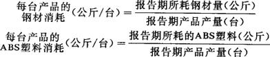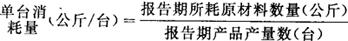 指对一定时期内的每台整机产品的消耗原材料数量进行考核。其计算公式为: