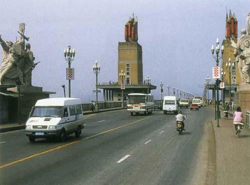 释义 | 南京长江大桥 南京长江大桥是跨越南京长江两岸的现代化铁、公路两用桥,建成于1968年,上层为公路桥,全长4589米,宽19.5米,4车道;下层为铁路桥,全长6772米,宽15米,双轨。每当夜色降临,华灯齐明,大桥犹如一条金色的长龙,绵延十几年。1984年,“天堑飞虹定为金陵新四十景之一。 |