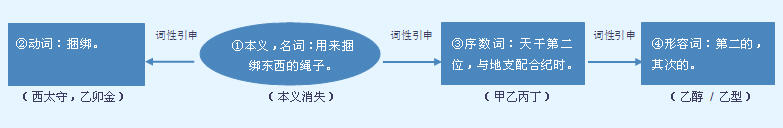 字源解说 乙,甲骨文 、 像一绳子。造字本义:用来捆绑的绳子。金文 、篆文 承续甲骨文字形。捆绑的绳子叫“乙”,用绳子捆绑叫“己”*(纪)。 附 文言版《説文解字》:乙,象春艸木冤曲而出,陰气尚彊,其出乙乙也。與丨同意。乙承甲,象人頸。凡乙之屬皆从乙。 附 白话版《说文解字》:乙,象初春草木弯弯曲曲长出地面,这时大地的阴气还很强大,草木只能艰难地破土冒出。古人用“乙”表示草木长出地面,这构思与用“|”表示引而向上相同。在天干顺序中,“乙”承续着“甲”;就字形看,“乙”像人的胫脖。所有与乙相关的字,都采用“乙”作边旁。 引申线索