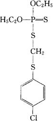 释义 | 卡波硫磷 C11H16ClO2PS3=342.85 CAS-786-19-6 S-[[(对-氯苯基)硫代]甲基]O,O-二乙基二硫代磷酸。 S-[[(p-Chlorophenyl)thio]methyl]O,O-diethyl phosphorodithioate. 杀虫药。 Carbofenotion,R 1303,Carbophenothion. INN,BAN(Carbophenothion),USAN. |
