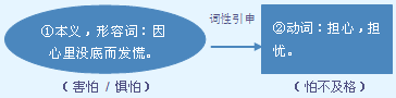释义 | ![]() ❶害怕,畏惧。能受程度副词修饰。常作带宾、带补谓语。宾语可以是非名词性词语。 老鼠~猫|她最~爹|我~挨打|他~老师批评|~酸~冷|~麻烦|一说到老虎,他就~成那副样子|走进坟场,毛骨悚然,心里~极了|想着想着心里就~起来|天不~,地不~,什么困难都不~。 ❷担心,疑虑。能受程度副词修饰。必带非名词性宾语。 大家~迟到,六点钟就动身了|不~慢,就~站|我们~你不知道,专门打电话通知你。 表示估计。相当于“也许”“或者”“恐怕”。只作状语。 请看那颗流星,~是他们提灯笼在走|这堆书~有1000册|这么大的雨,~他不会来了。 【辨】 (一)怕和惧怕:都是动词,都有畏惧的意思。 区别: ❶词义不尽相同。“怕”除有害怕、畏惧的意思外,还有担心顾虑的意思;“惧怕”没有这层意思。 ❷语体色彩不同。“怕”既用于口语,也用于书面语;“惧怕”多用于书面语。 ❸“怕”有副词用法,“惧怕”只用作动词。 (二)怕和恐怕:见“恐怕”。 【词语】 怕人 怕生 怕事 怕羞 字源解说 白,既是声旁也是形旁,表示空无。怕,篆文 ![]() ![]() ![]() ![]() ![]() ![]() 附 文言版《説文解字》:怕,無爲也。从心,白聲。 附 白话版《说文解字》:怕,因畏惧而无所作为。字形采用“心”作边旁,采用“白”作声旁。 引申线索 ![]() 【字族索引】 白 【同音字】 pà |
