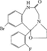 释义 | 卤噁唑仑[中] C17H14BrFN2O2=377.21 CAS-59128-97-1 10-溴-11b-(邻-氟苯基)-2,3,7,11b-四氢噁唑并[3,2-d][1,4]苯并二氮-6(5H)-酮。 10-Bromo-11b-(o-fluorophenyl)-2,3,7,11b-tetrahydrooxazolo[3,2-d][1,4]-benzodiazepin-6(5H)-one. 催眠镇静药。 溴氟唑仑。 Haloxazolam,Somelin,CS 430. INN,JAN,USAN,MI. |